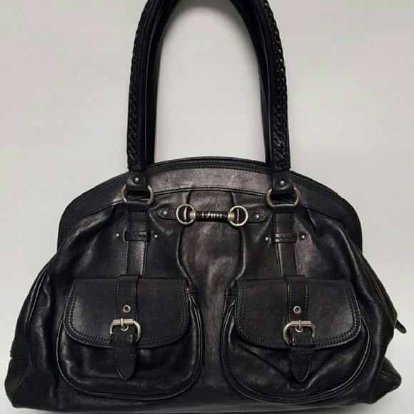 Authentic Christian dior black leather silver 15"L