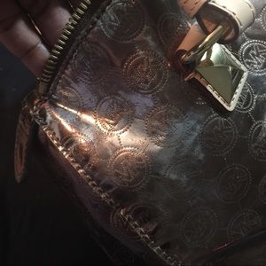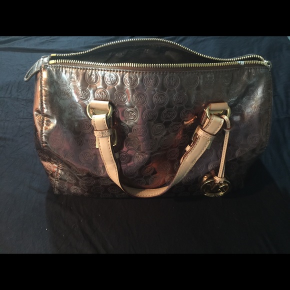 Grayson medium mirror gold metallic satchel. Gently used. Minor discoloration on top right and left side as shown in picture
