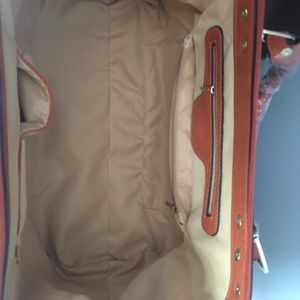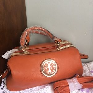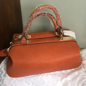 Orangey brown purse, gold detailing, tan interior with 4 interior pockets. Never used (still has plastic it came in) *Will lower price!!! Willing to accept almost any offer!!!