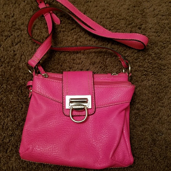 Hot pink purse 2 main pockets and space in the middle