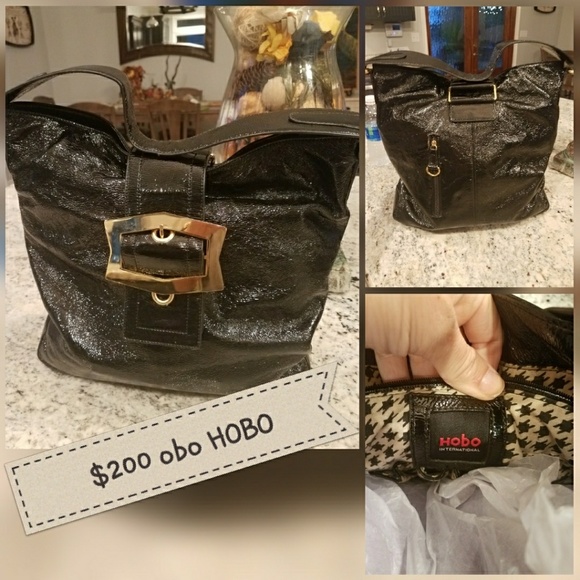 Black patent tote