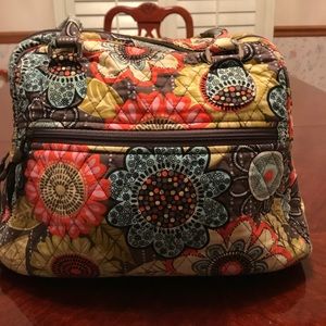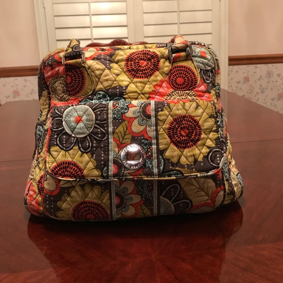 Pre-loved Vera Bradly purse/ good condition/ one flaw (missing fastener on front pocket in picture 2)/purse has front pocket/ huge back zip pocket/ several compartments on inside including zip pocket