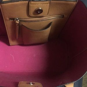 Light brown purse in excellent condition. No scratches or tears. Has a little pouch on the inside with a holder for a phone. Very practical.