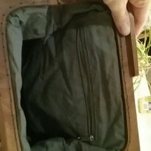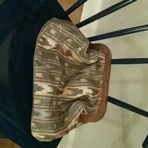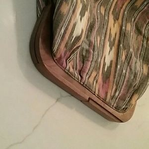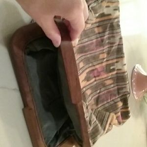 Clutch cotton pocketbook made in india. Boho chic. Wooden handle, lined gray. New condition. So cool!