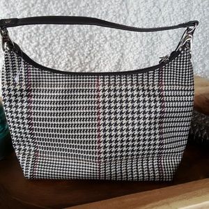 New Mini handbag. Classic pattern fabric with faux leather trim.