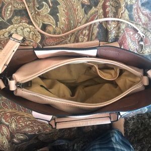 Baby pink. Large space. Broken clip but handles are in tact. Good condition
