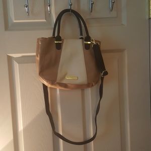 It is a beige off white and black Steve Madden