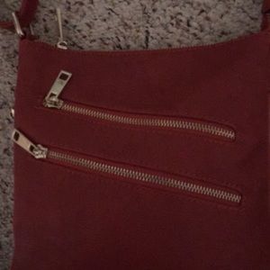 2 zippers in front one in back red orange purse great condition