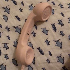Very color full has butterflies comes with a cute phone that you can hook up to your phone and talk with it