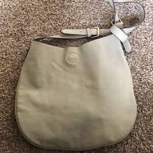 Tan long strapped purse