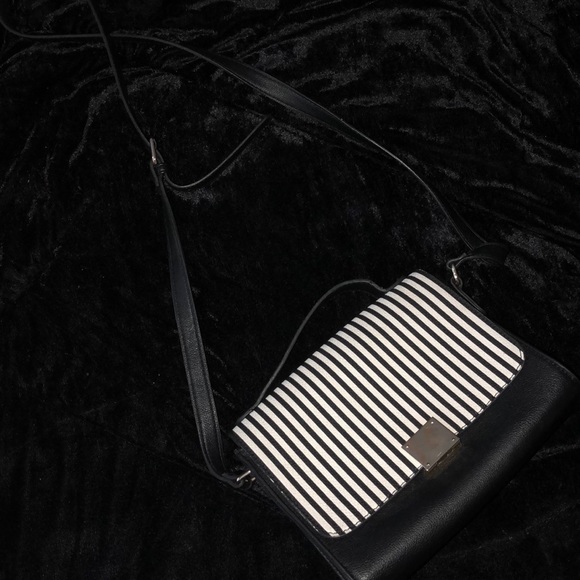 Black and white shoulder bag with gold detail