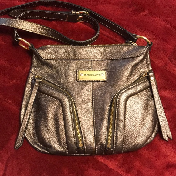 Lightweight, adjustable strap purse. Can be used over the shoulder or any other way you choose! The color is a metallic brown.