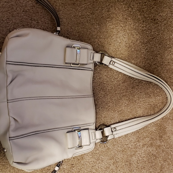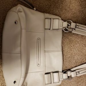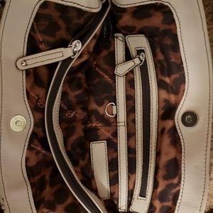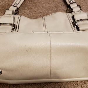 Creme leather shoulder bag many pockes
