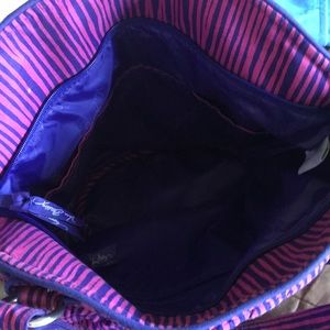 2 large exterior slip pockets, 3 interior slip pockets, 1 interior zip pocket, zip closure