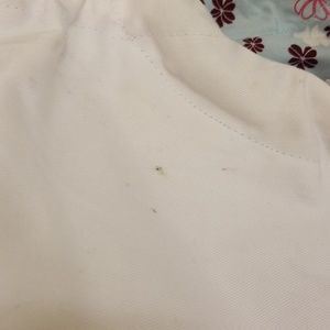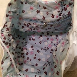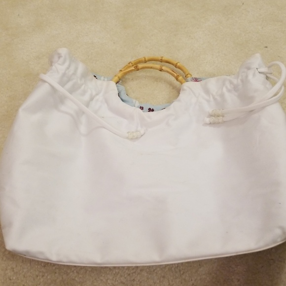 White bag with bamboo handle detail. New, never been used. Small black mark (seen in last picture). Could be removed with cleaning.