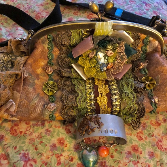 Vintage beauty. Clutch style or cross body. Strap can be removed. Ooak. Intricate treasure. Small cuff bracelet will be added for a treat. B