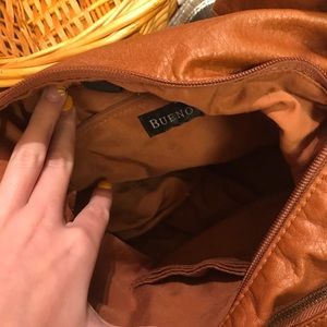 So much room & so many pockets!! Brown leather, the strap is adjustable.
