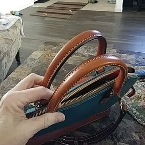 Dooney & Burke used twice like new. It is teal but had to choose blue due to no teal button to choose. Smoke free home. No imperfections. It would love to come home with you.