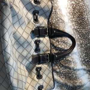 Very versatile Dooney and Bourke large handbag / computer bag. Extremely well-designed. You will love this big, attractive, and practical bag. Some minor wear on the corners (see pictures) and some marks inside, but still lots of great life left.