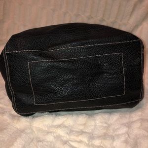Inside center zipper compartment. Center divider to help keep organization. Outside zipper compartment to store small items. Clean inside no stains.