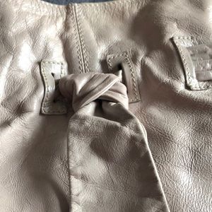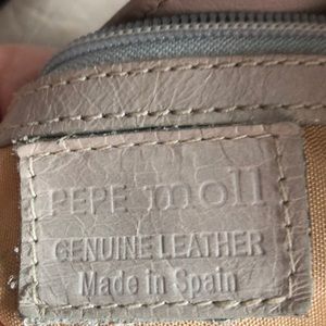Super cute beige leather shoulder bag. In great condition and several zipper compartments inside. Brand is Pepe Moll