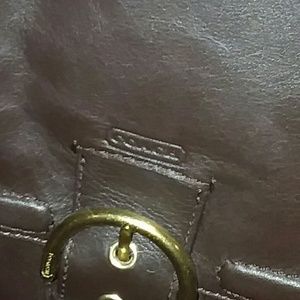 Brown Coach shoulder purse with front pocket. Has Coach number inside purse.