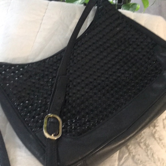 Black leather and shiny shoulder bag
