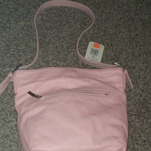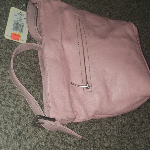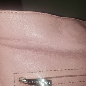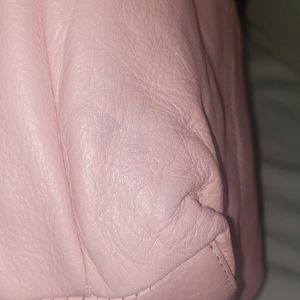 Light pink Purse with double zippers on the outside and double sides on the inside. This purse had a little scratch and a little light blue on the bottom side. Pictures are added