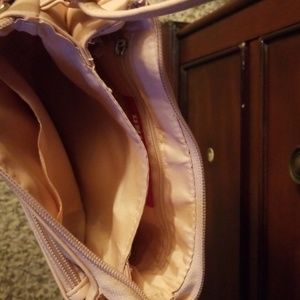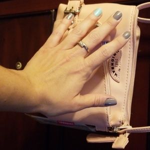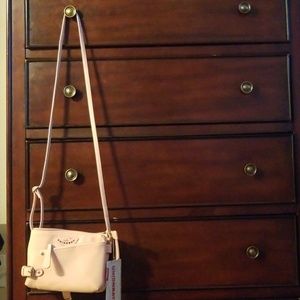 Super cute small cross body purse. Brand new with tags. Super cute baby punk/Blush in color. Has a cards slot on the backside. Hand in pick for size comparison. Obo!