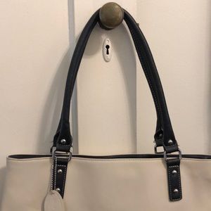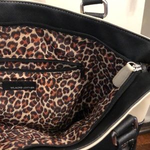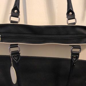 Beautiful leather laptop bag or purse. Black and white leather.