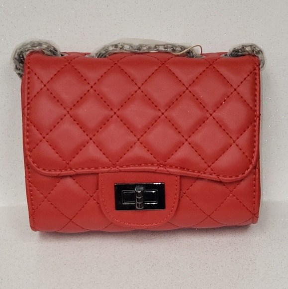 Red and Black shoulder hand bag, with a removable black chain strap and beautiful details.