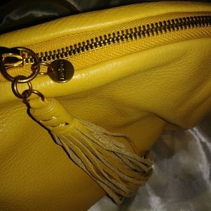 Yellow soft leather hobo purse w/tassel and gold hardward
