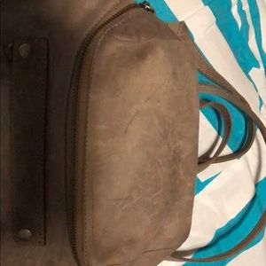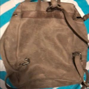 Frye backpack purse. Brown nubuck leather. Very rustic looking. Used for about a month. No soils, marks, or snags inside. A couple minor scratches on the outside flap in front. Very good quality, and really sturdy. Will last forever