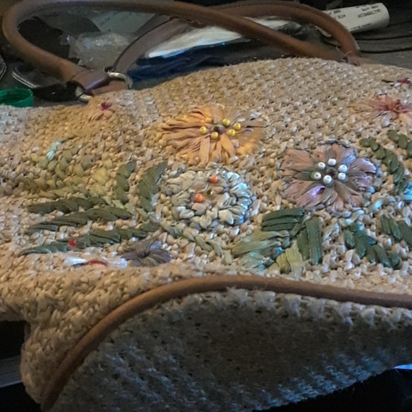 Flowered purse has 6 pockets nice purse serves it's purpose