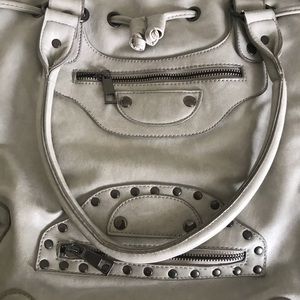 Faux leather purse light grey/taupe color. Has shoulder straps and a cross body strap. Large