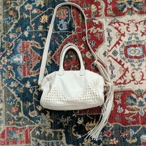 Cream studded tassel handbag