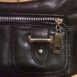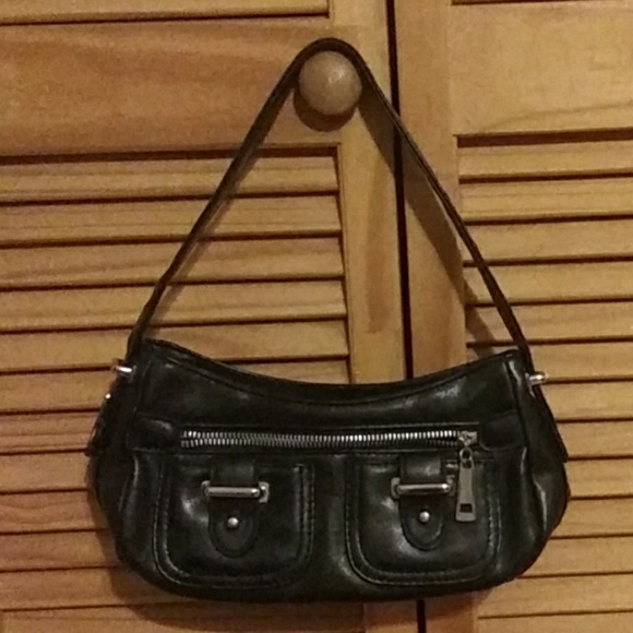 Perfect night out on the town purse. Not too big and certainly not too small. Black pleather. Elastisized spot for your cell phone, zipper to keep purse shit when need be.