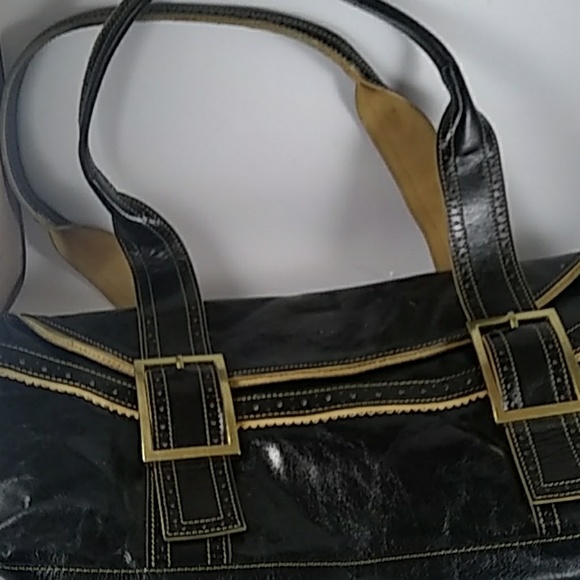 Black and gold suede. Buckles gold color.
