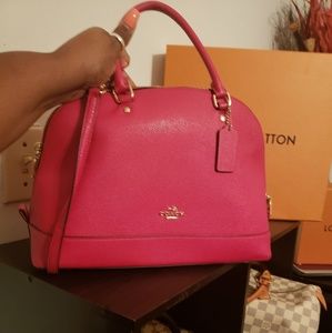 Fuchsia Crossbody with removable strap, EUC, still stiff, barely carry, no foul smell, inside pocket.