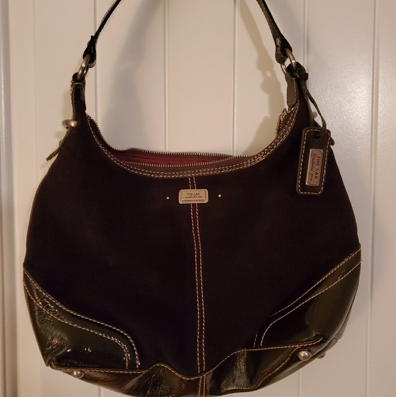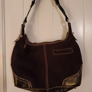 Suede and patent leather purse never used. Strap is 18 inches long. Smoke free home.