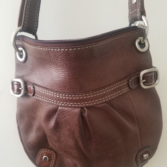 Brown leather crossbody fossil purse