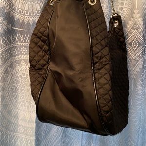 Beautiful quilted bag with chain detail. In great lightly used condition. I used maybe a couple months. It has a bit of wear in piping on bottom edges but that’s really hardly noticeable. Roomy enough to put an wallet, organizer and iPad or throw a diaper and wipes in along with your wallet.