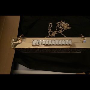A very beautiful yellow gold clad purse . A rectangular Crystal Bag.! With a beautiful gold look chain and a nice purse for a beautiful special evening out on the town. Very stunning . New. Never used. Comes with velvet pouch to protect in storing. ( price firm)