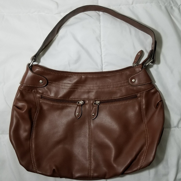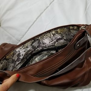 - Condition: Fair. There is a small flaw in the back of the purse like a white mark as seen in picture. Also, the inside of the purse has yellowish marks inside the purse as seen in pictures. Used.