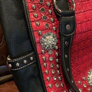 P&G bag red Faux Croc with black trim and lots of bling. Never used in perfect like new condition.