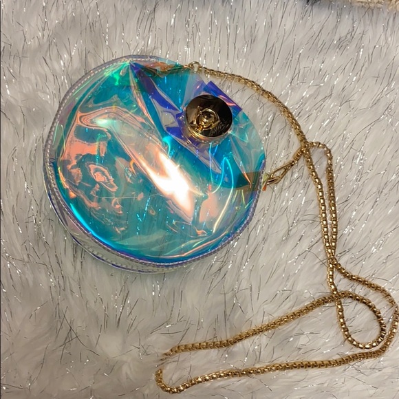 ‘Clear’ purse with chain straps! If you look up close it looks almost ‘metallic’ to the naked eye but it’s ‘see through’