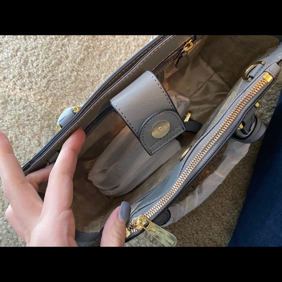Gray purse with gold details