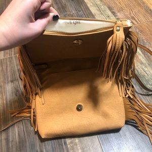 BRAND NEW purse! This purse is seriously so cute & will go with anything. The fringe is the best part!!