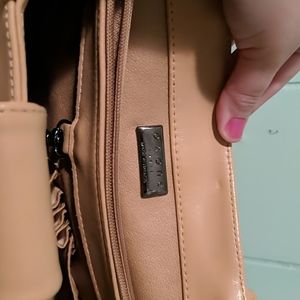 Genuine leather beige purse. Some minor defect inside of the purse ink was spilled. Otherwise over very nice elegant purse.