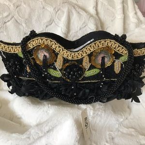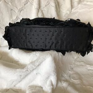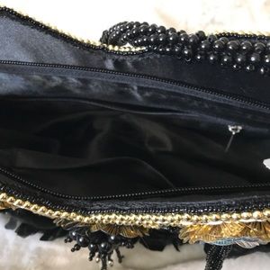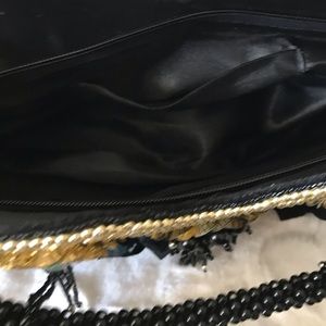 Black purse in black beads and multi color sequins and flowers. Purse has a zipper closure for added security. Large enough to hold all personal items. Approximate measurements: 16 inches x 5 inches x 7 inches. Bottom of purse ๐ is adorned with black beads as well as the handles.